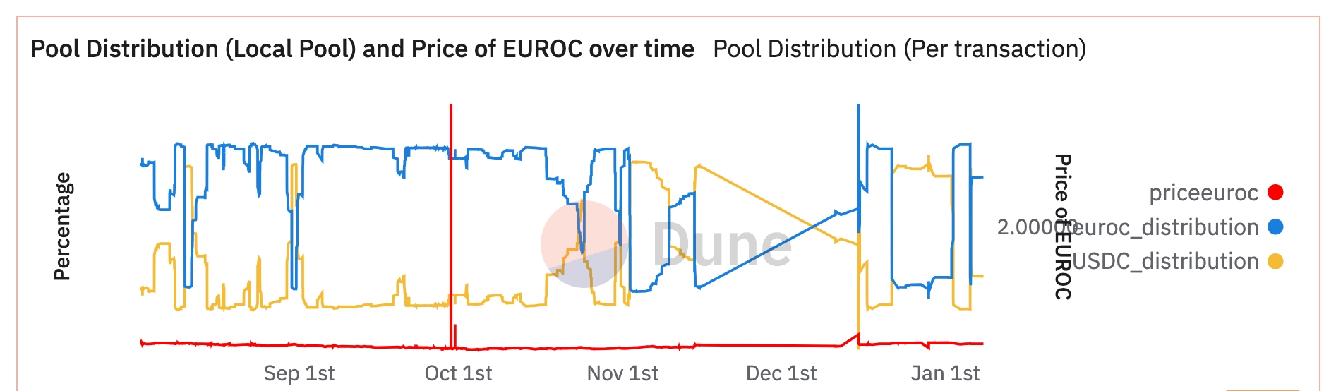 EURC:USDC Avalanche LP Ratio Over Time: https://dune.com/xavefinance/euroc-usdc-pool-avalanche